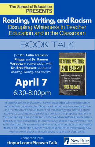 Join Dr. Asilia Franklin Phipps and dr. Ramon Vasquez in conversation with Dr. Bree Picower, author of Reading, Writing, and Racism.